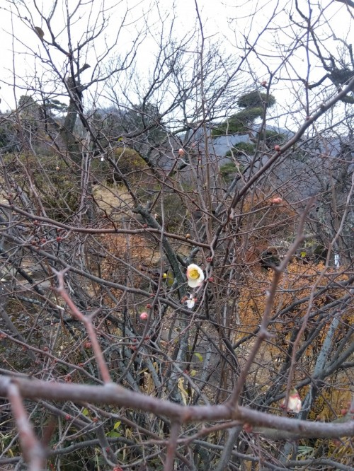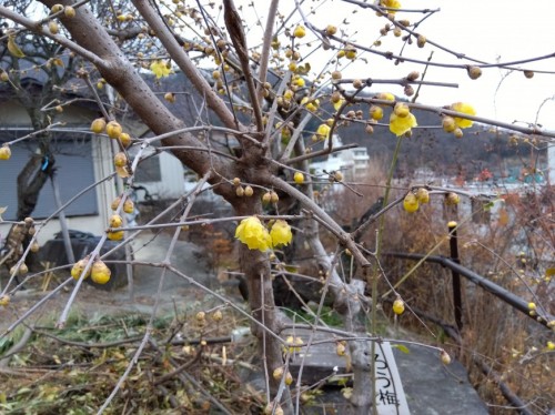 今日から仕事始めです。早速恒例の松の手入れが始まりました。あいにく雪がちらつき天気ですが、花の開花が見られました。「ろうばい」「ぼけ」がちらほら咲いています。梅の花はまだまだつぼみの状態です。2月1日(土)開園となります。
