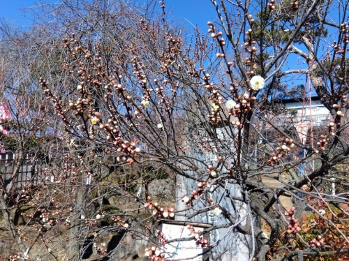 入口の「冬至梅」が日ごとに開花!