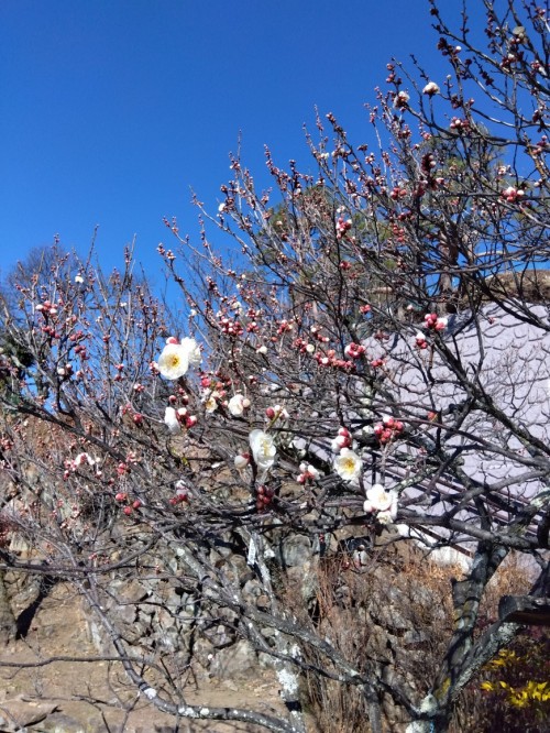 「玉牡丹」は2分咲きに 無料開園は14日までの予定です。園内はちらほらと花が咲き出してきました。早咲きの「冬至梅」「寒紅梅」が2輪、3輪と咲き出してきています。今週雨が降れば一気に咲き出す気配です。 「黄梅」もちらほら 梅天神上の「冬至梅」 梅天神上の「寒紅梅」 富士山と「寒紅梅」