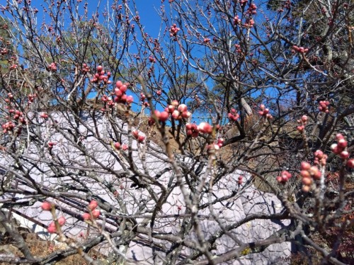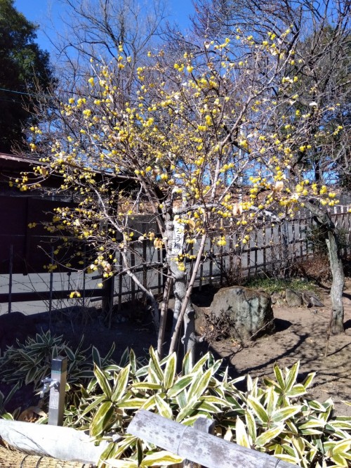 「冬至梅」が少し膨らんでいます。 1日(土)の開園ですが、「梅の花」が全く咲いていません。「ろうばい」「ぼけ」のみです。そのため7日(金)までは無料開園とします。なお2日(日)は雪または雨の予報ですので、休園となります。12月からの雨がほとんど無いのが原因と考えられます。なお売店は営業しています。 入園口の「ろうばい」 梅天神横の「玉牡丹」は間もなく開花です。